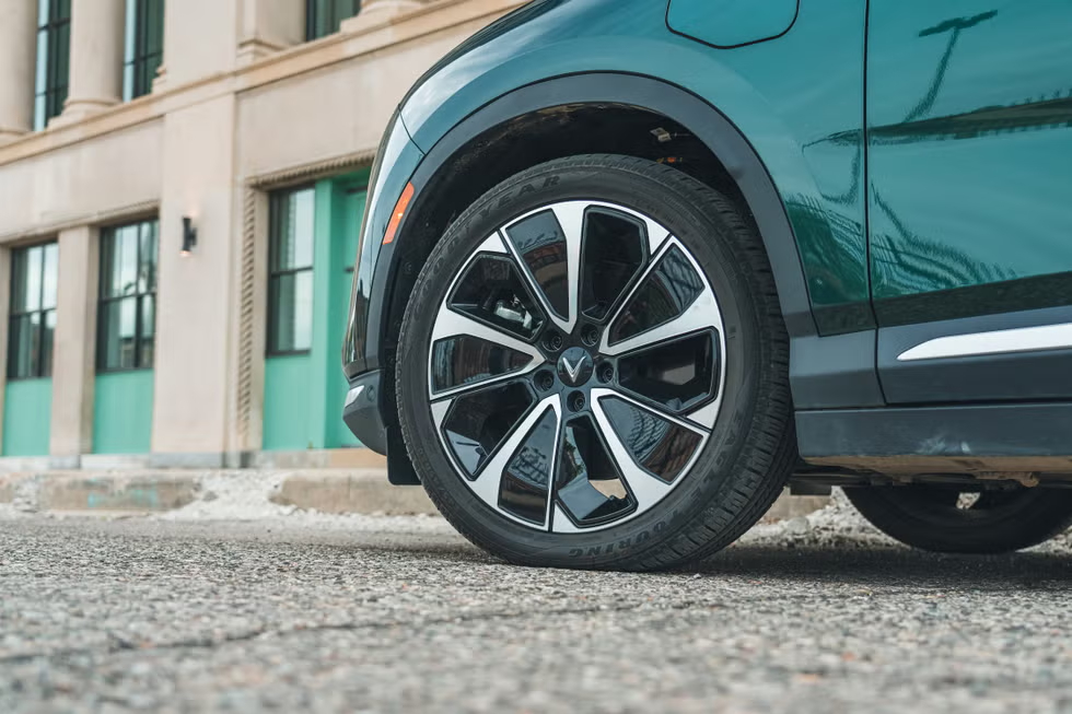 • Thiết kế: VF8 nổi bật với dải đèn LED hình cánh chim ở đầu xe và đuôi xe – đặc trưng của VinFast. Mui xe vuốt coupe thể thao, kết hợp cùng la-zăng hợp kim 19 inch (Eco) hoặc 20 inch (Plus).